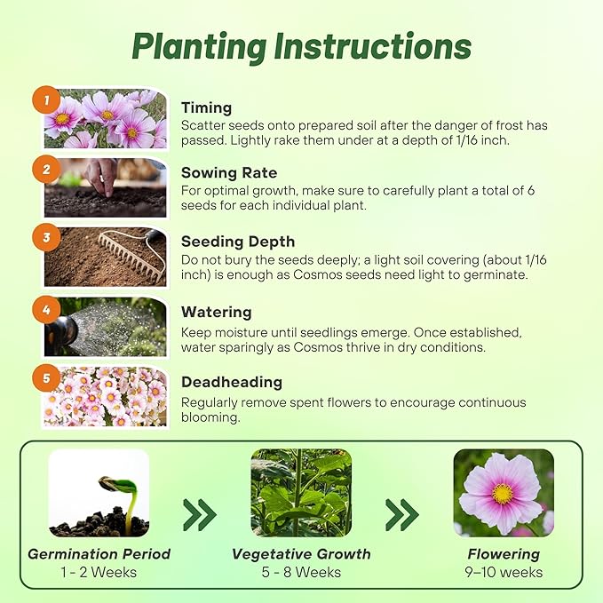 - Like all the other types of cosmos flowers, it is a snap to grow from seed. If you plant cosmos in the Spring after frost season you will have big blooms from midsummer right up until frost. Grows 36 - 60 inches tall as an annual.