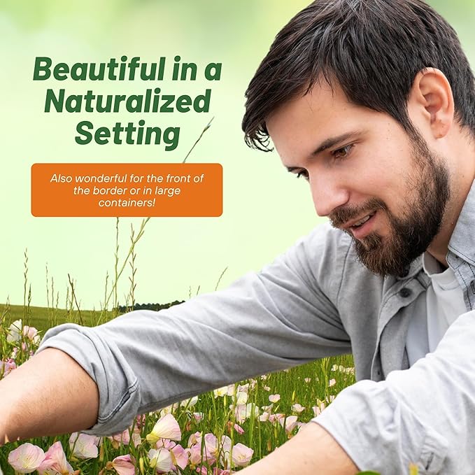 - Showy evening primrose wildflower seeds are grown in USDA Zones 6 - 10.