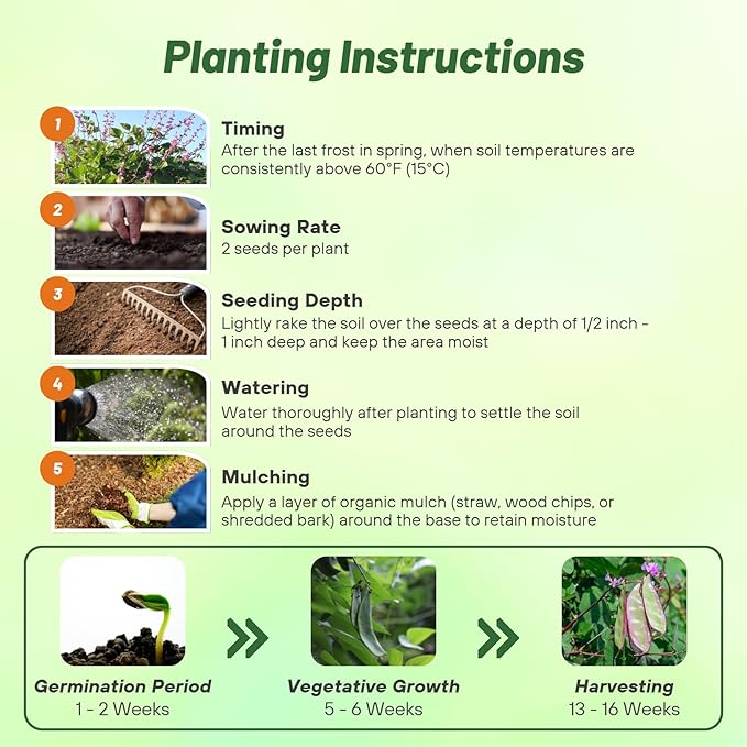 - Sowing Rate: 2 seeds per plant. Start the Dolichos lablab seeds directly outdoors after frost danger has passed. Cover seed with 1/2 inch of soil. Keep the soil moist. With temperatures between 65 - 70F, germination is usually within 20 days.