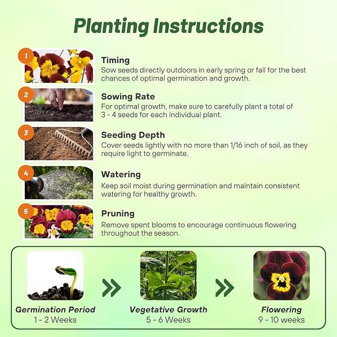 - Sow 3 - 4 seeds per plant. For spring transplants, start the Viola seed indoors 8 - 10 weeks before the last frost date. Using trays or small pots, sow the flower seeds on pre-moistened seed starting soil and cover with plastic to help keep the seeds moist. Once sprouts emerge, remove the plastic. When Viola seedlings are large enough to handle, transplant into individual pots and grow in cool temperatures. Harden off Viola flowers for 10 days or more before transplanting out.