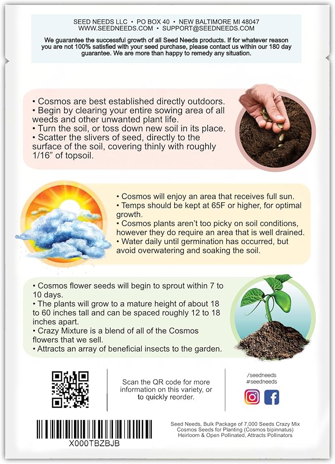 - Freshness: All Cosmos seeds are packaged in tear resistant and moisture resistant packaging. This keeps the seeds a whole lot fresher than the competitions selection!