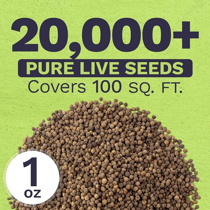 - Extra large packet contains over 1 full ounce of pure live seeds (20,000+ seeds!) Enough to cover 100 square feet