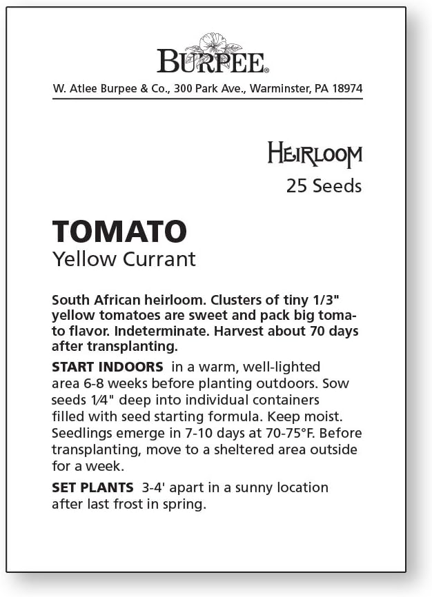 Burpee 'Yellow Currant', Yellow Sweet Cherry Tomato, 30 Non-GMO Seeds