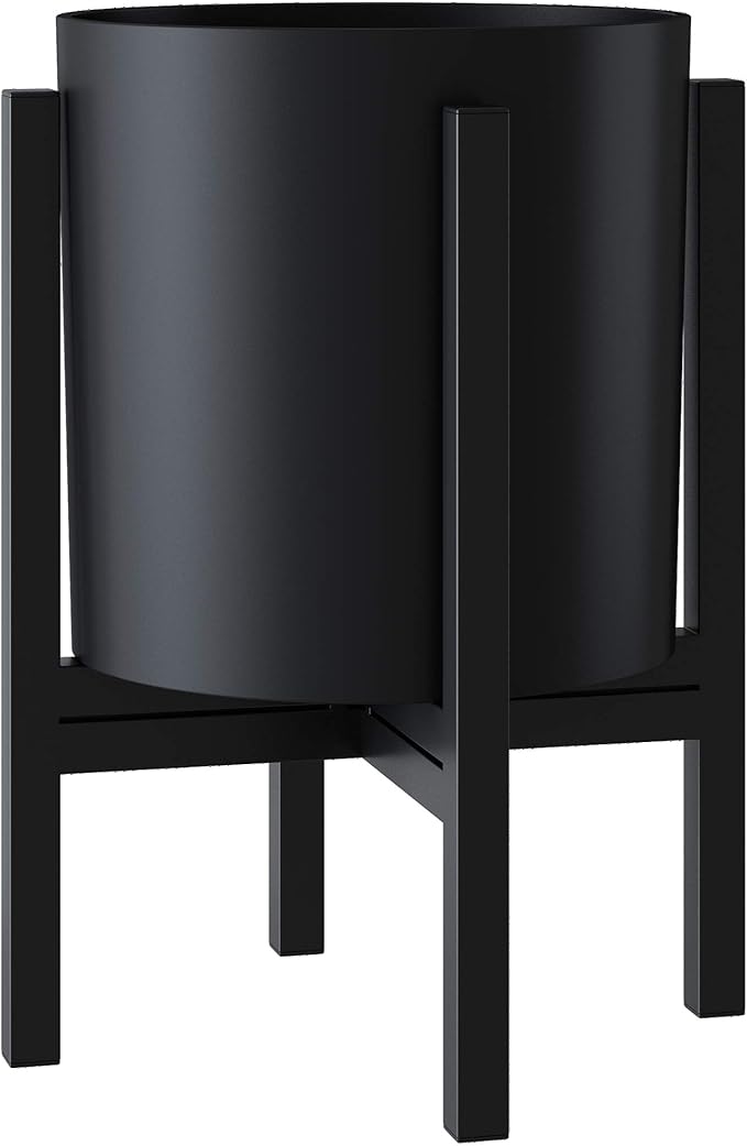 FaithLand Plant Pot 10 inch - Perfectly Fits Mid-Century Modern Plant Stand - Drainage Plug and Drainage Mesh Screen - Matte Black Planter