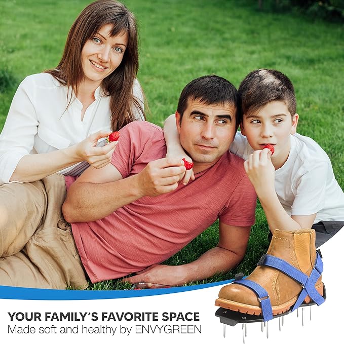 - Revitalize Your Lawn – Have you spent hours seeding, watering, and mowing your yard only to be left with dull brown grass? EnvyGreen’s lawn aerator shoes will help keep your yard healthy and vibrant.