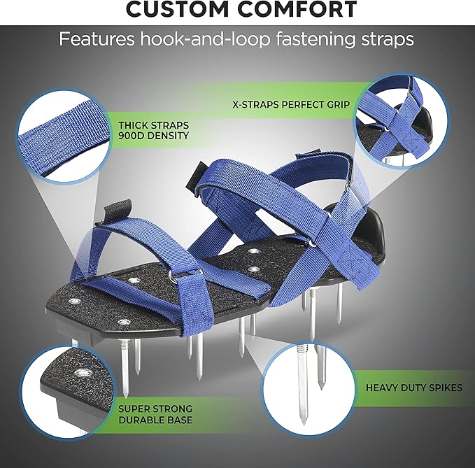 - Easy To Use – Slipping and sliding in your aerating shoes can add frustration and time to your lawn care. Avoid the hassle with EnvyGreen’s tested and verified X-strap technology, which holds your shoe snugly in your gardening boots.