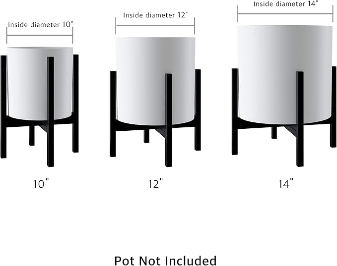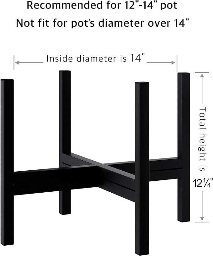 • 【Size & Matching Pot】- Height is 12 1/4” , interior diameter is 14". Fits perfectly with all outdoor indoor flower pots that are 14" or smaller in outer diameter. The plant stand comes without the pot. We have 14" plant pots available that fit this plant stand seamlessly. Simply search Amazon for " 14" Plant Pot " for perfect match.