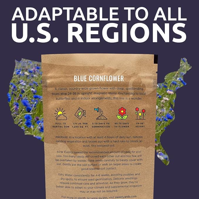 Blue Cornflower Seeds – Bachelor Buttons – Bulk Quarter Pound Bag – Over 20,000 Open Pollinated Non-GMO Wildflower Seeds – Centaurea cyanus