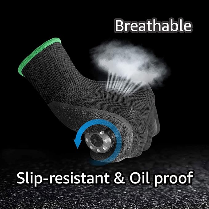 - TEXTURED COATING: Latex/rubber palm and finger crinkle coating, provides Anti-slip, Cut and Puncture resistant and repels light liquids.