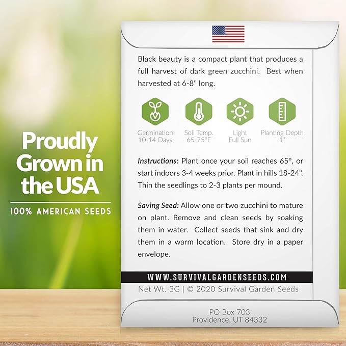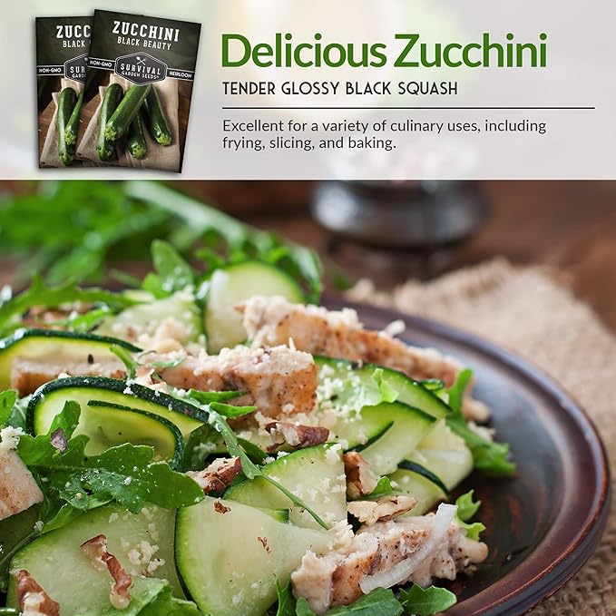Survival Garden Seeds - Black Beauty Zucchini Seed for Planting - 1 Pack with Instructions to Plant & Grow Dark Green Summer Squash Plants in Your Home Vegetable Garden - Non-GMO Heirloom Variety