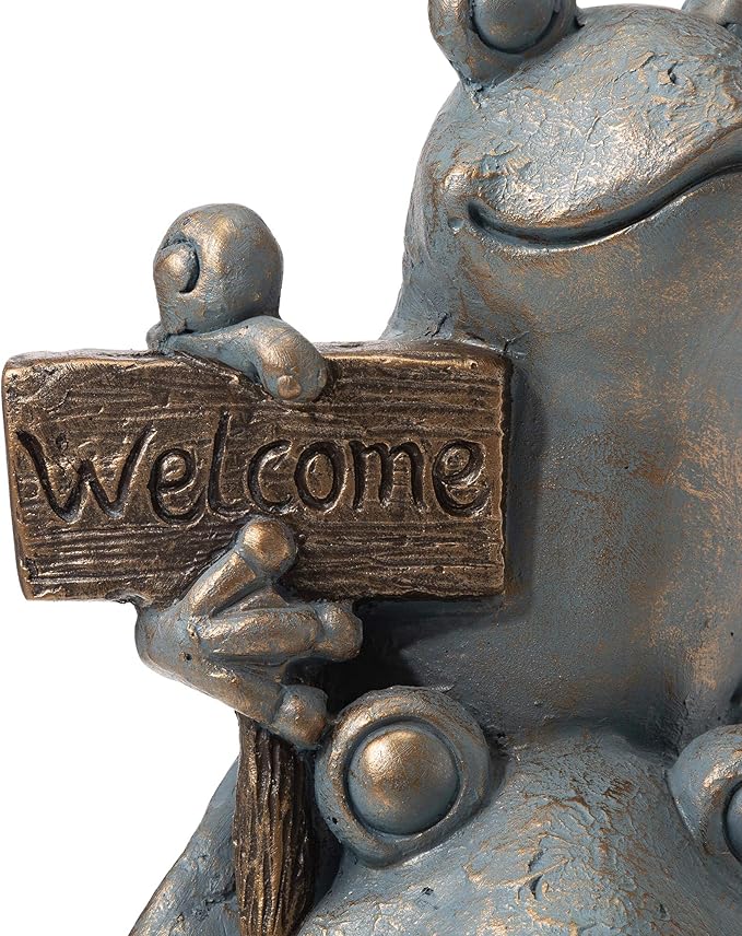 - EYE-CATCHING DETAILS: Handmade antique bronze finish gives a sense of vintage and superior touch. Designed as the stacked frogs holding a "welcome" sign looks vivid and interesting.