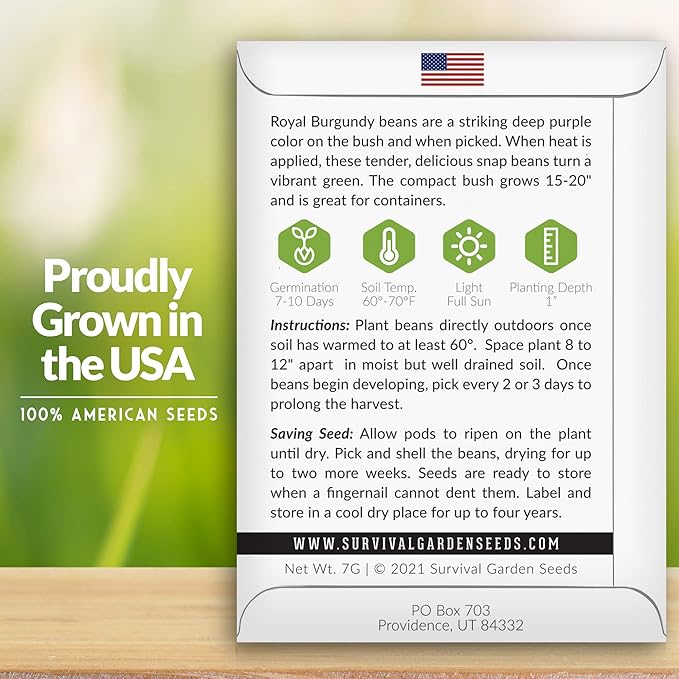 Survival Garden Seeds - Royal Burgundy Bean Seed for Planting - Packet with Instructions to Plant and Grow Stringless Purple Bush Beans in Your Home Vegetable Garden - Non-GMO Heirloom Variety