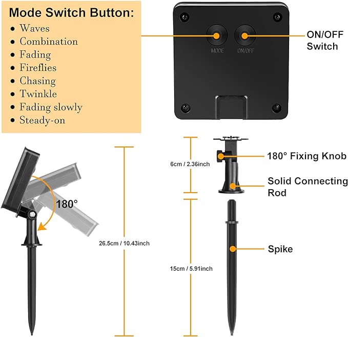 - Super Easy to Install: You surely will enjoy the ease of putting on the string lights for the highly flexible copper wire can be easily bent into any shapes you want and wrapped around trees, fences or any other objects. The solar panels can be either mounted on the wall or plugged into the grass to get sunlight exposure. Considerably all necessary mounting accessories are included in the package for instant use.