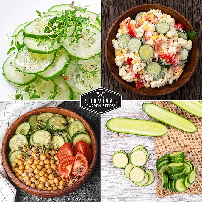 Survival Garden Seeds - Beit Alpha Cucumber Seed for Planting - Pack with Instructions to Plant and Grow Smooth Green Burpless Cucumbers in Your Home Vegetable Garden - Non-GMO Heirloom Variety - 2
