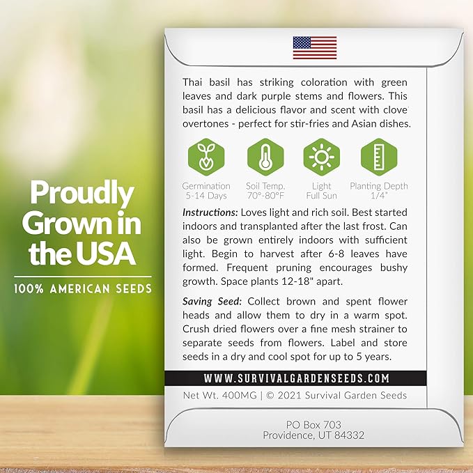 - Grow Now Or Later: Begin your Thai basil seed planting now or store the garden seeds for future planting seasons. Each seed packet includes instructions for saving seeds, allowing you to sustain your harvest and share with others.