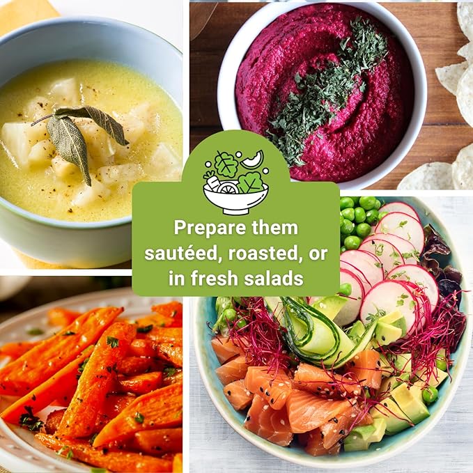 - Beautiful - Large individual packets of Detroit Dark Red Beet, Imperator Carrot, Kohlrabi White Vienna, French Breakfast Radish, and Purple Top Turnip seeds. Have fun digging up some delectable root veggies this season.