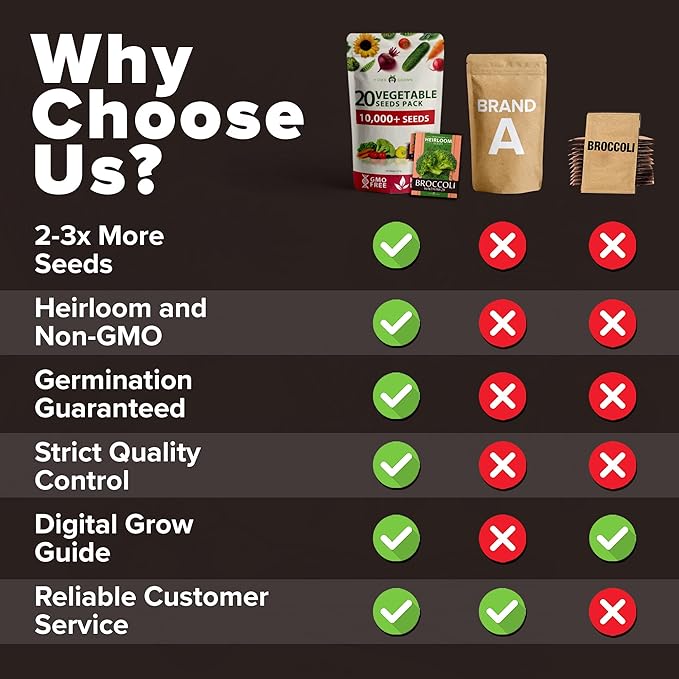 - Perfect Selection of Vegetables for Your Family Garden - Included in each pack you will get the top Heirloom Vegetable varieties. Each pack includes varieties such as Contender Beans, Waltham Broccoli, Blue Scotch Kale, Oregon Sugar Peas, Marglobe Heirloom Tomatoes, Black Beauty Summer Squash, and many more. You can't go wrong with these culinary favorites.
