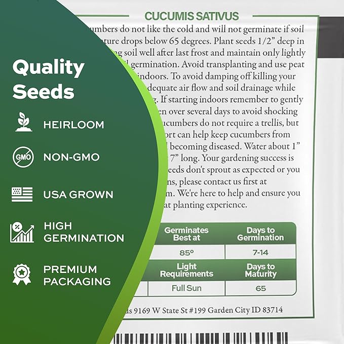 - Experience American Quality: Grow your own slice of American heritage right in your backyard with our premium packaged, USA-grown SpaceMaster cucumber seeds. Relish the satisfaction of nurturing top-notch produce, representing the robust quality and resilience of American farming.