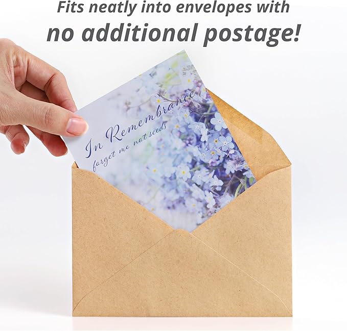 - Forget-Me-Not Design: Featuring delicate forget-me-not flowers and a poignant quote, these packets serve as meaningful memorial cards to commemorate the love and legacy of those we've lost.