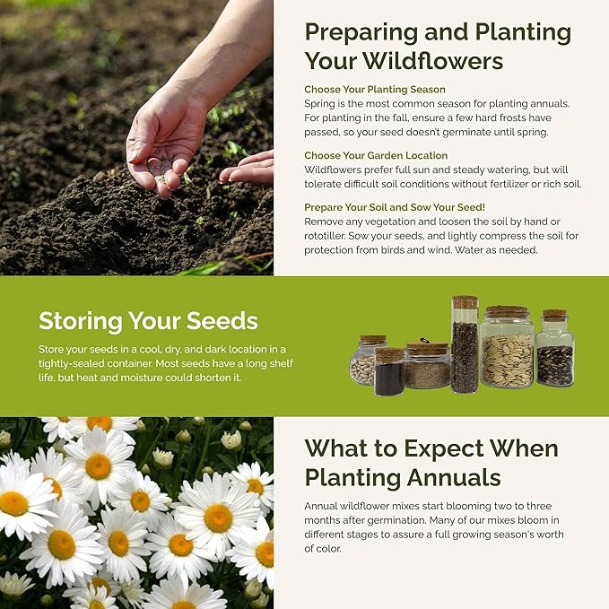 - Attracts Pollinators - With up to 1,200 square feet of ground cover, this non-GMO seed mix is sure to bring the bugs and birds to your yard! Easily attract bees, butterflies, and hummingbirds to pollinate blooms.