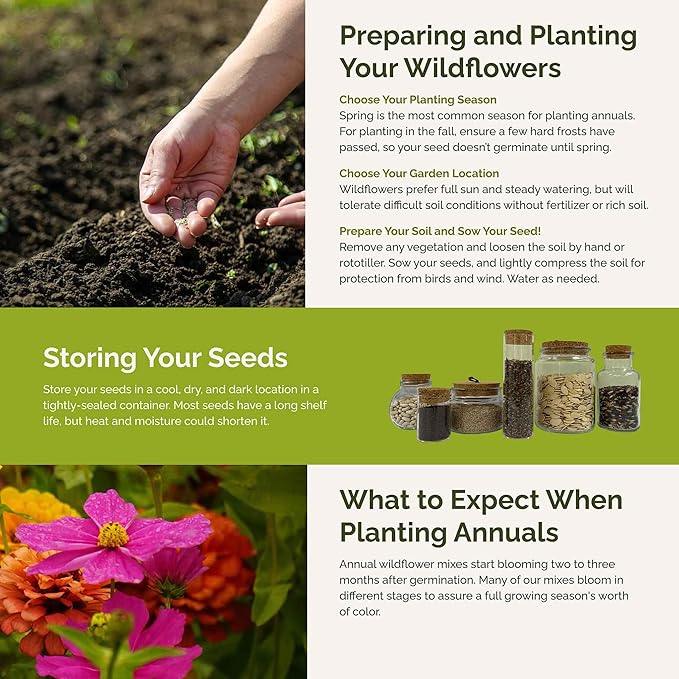 - Attracts Pollinators - With up to 1,200 square feet of ground cover, this non-GMO seed mix is sure to bring the bugs and birds to your yard! Easily attract bees, butterflies, and hummingbirds to pollinate blooms.