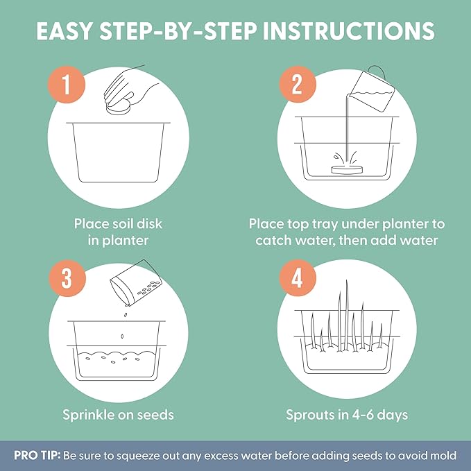 - Cat Plant Magic: Add a soil disk, a splash of water, and a sprinkling of seeds, and watch your cat grass planter kit sprout like magic. Read our Cat Ladies insert for easy-to-follow instructions and growing tips, and watch your organic cat grass sprout up to 4” in just 4–7 days. No green thumb required.
