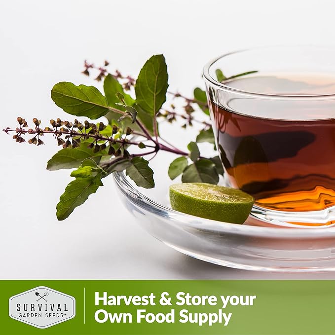 Survival Garden Seeds - Holy Basil Seed for Planting - 2 Packs with Instructions to Plant and Grow The Indian Sacred Herb Tulsi in Your Home Vegetable Garden - Non-GMO Heirloom Variety - Basil Plant
