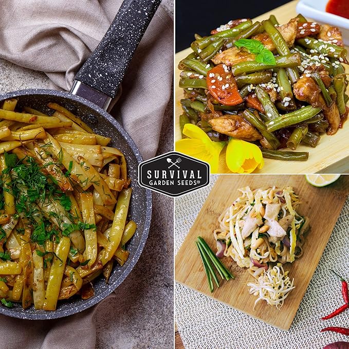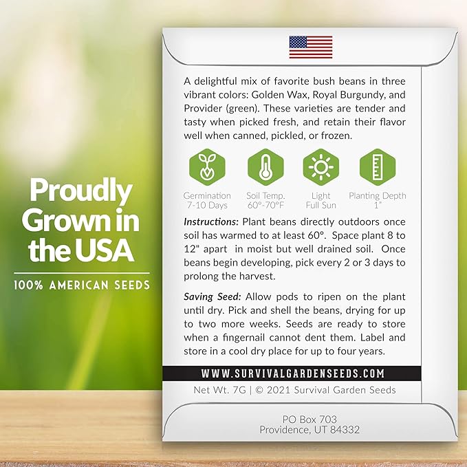 Survival Garden Seeds - Tri-Color Bean Seed for Planting - 3 Packs with Instructions to Plant and Grow Yellow, Purple, and Green Bush Beans in Your Home Vegetable Garden - Non-GMO Heirloom Variety
