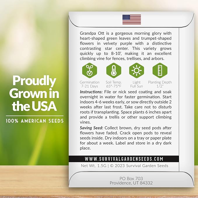 Survival Garden Seeds - Grandpa OTT Morning Glory Seed for Planting - 5 Packs with Instructions to Plant and Grow Ipomoea Purpurea in Your Home Vegetable Garden - Non-GMO Heirloom Variety
