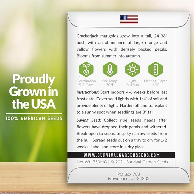 Survival Garden Seeds - Crackerjack Marigold Seed for Planting - 3 Packs with Instructions to Plant and Grow in Your Home Vegetable Garden - Non-GMO Heirloom Variety