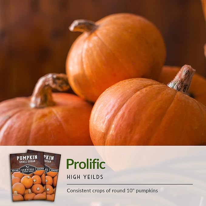 Survival Garden Seeds - Small Sugar Pumpkin Seed for Planting - 5 Packs with Instructions to Plant and Grow Pie Pumpkins in Your Home Vegetable Garden - Non-GMO Heirloom Variety Plant Seed