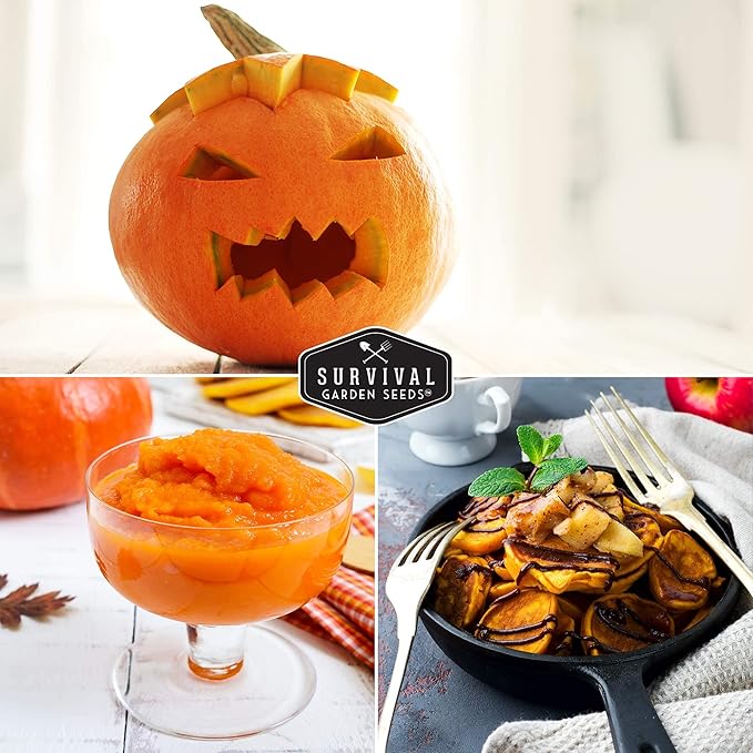 Survival Garden Seeds - Small Sugar Pumpkin Seed for Planting - 2 Packs with Instructions to Plant and Grow Pie Pumpkins in Your Home Vegetable Garden - Non-GMO Heirloom Variety