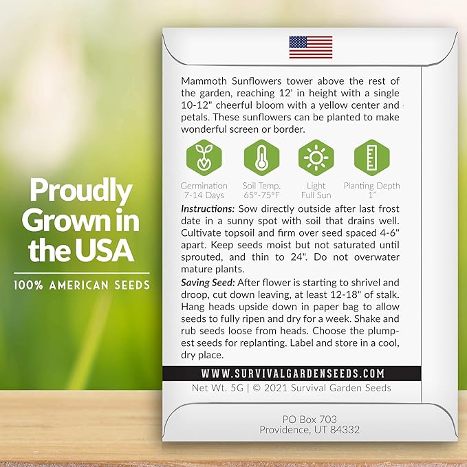 - The Info You Need to Grow - The Non GMO Sunflower seeds for planting are packed in a beautiful paper packet with instructions for successful growing and germination in your home garden. Each package also has instructions for saving seeds after harvest. Getting started is simple for both beginner and experienced gardeners.