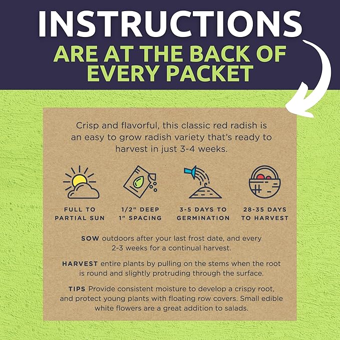 - RADISH - GARDENER PACK: Spice up your garden with this 5-pack of radish varieties! From the crisp Cherry Belle to the vibrant Easter Egg Blend and sweet Misato Rose, these radishes are perfect for salads, pickling, and snacking.