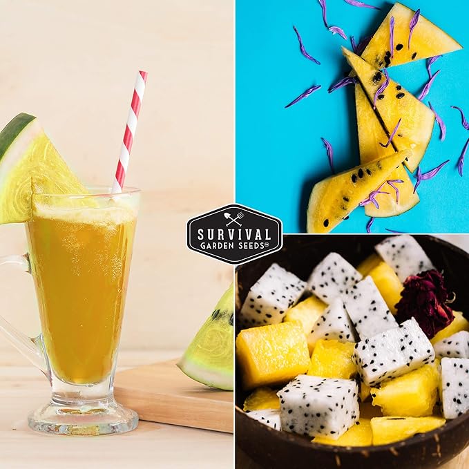 - Fragrant & Beautiful: Pale yellow watermelon flesh is exceptionally sweet and fragrant, surrounded by a vibrant green striped rind. Enjoy watching your own watermelon grow from our mini watermelon seeds into plants and delicious fruit.