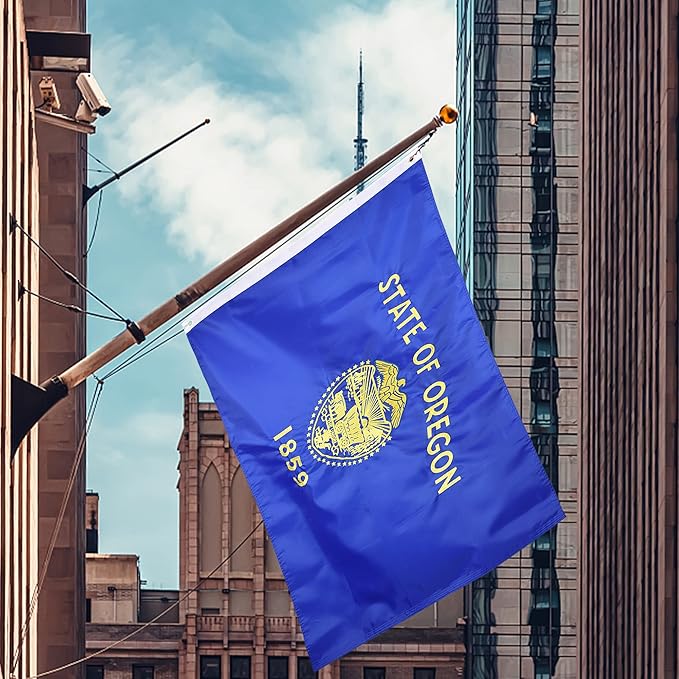 - Strong, Durable: 5x8 Oregon flag outdoor heavy duty, Four Point Needle Fly Hem (4 rows of stitching), 3 Brass Grommets. Fly your big Oregon Flags for outside 5x8 proudly in the rain, snow, high winds and sunshine! The perfect all weathers, Indestructible American OR State Flags for outside banners