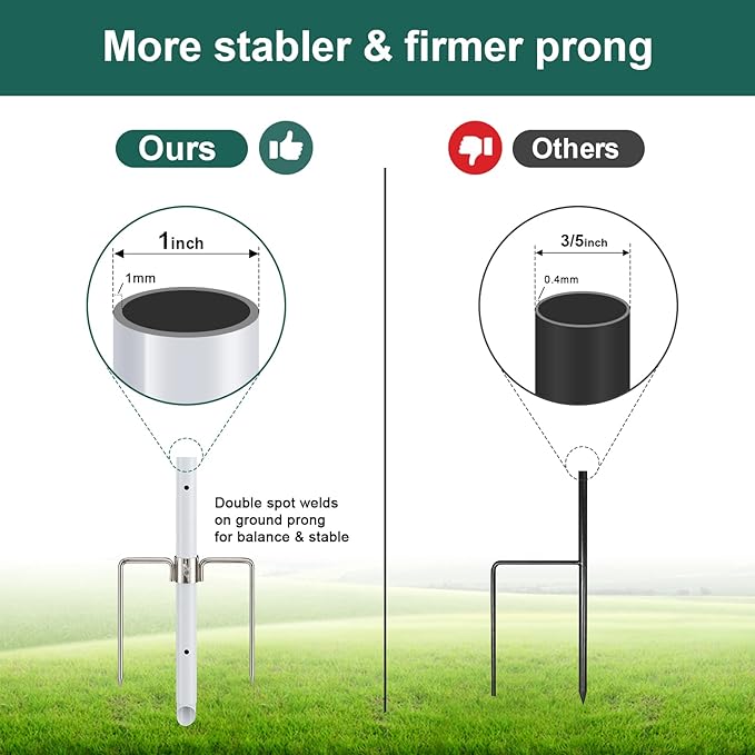 - Wind-Proof Stability!: Our flag pole features a -strong 12” middle prong and a 2-prong base that digs deep into the soil, keeping your flag standing tall even when the wind picks up