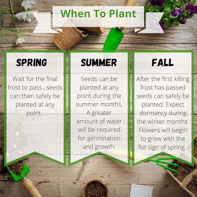 - Premium seeds for planting flowers - 100% pure spring flower seeds with no fillers. These wildflowers germinate quickly and grow fast. Each mix creates a beautiful garden.