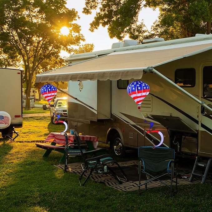 BATTIFE 2Pcs Patriotic Hot Air Balloon Wind Spinner, American Flag Kinetic Wind Twister with Tail, Outdoor Spiral Windmill Garden Yard, 4th of July Hanging Decoration