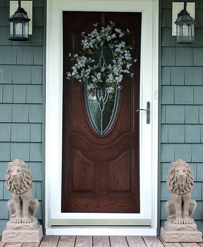 EMSCO Group Guardian Lion Statue – Natural Sandstone Appearance – Made of Resin – Lightweight – 28” Height