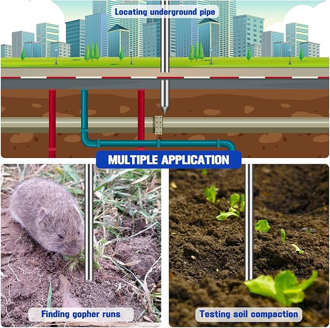 - Widely Applicable: septic tank locator tool is a practical soil probing tool that can be applied extensively for locating septic tanks, locating underground pipes and water lines, gopher runs locating, soil compaction testers, and will be an ideal gardening and landscaping tool