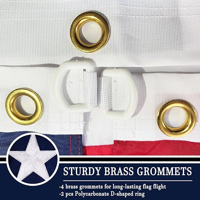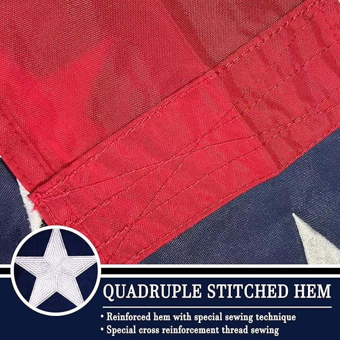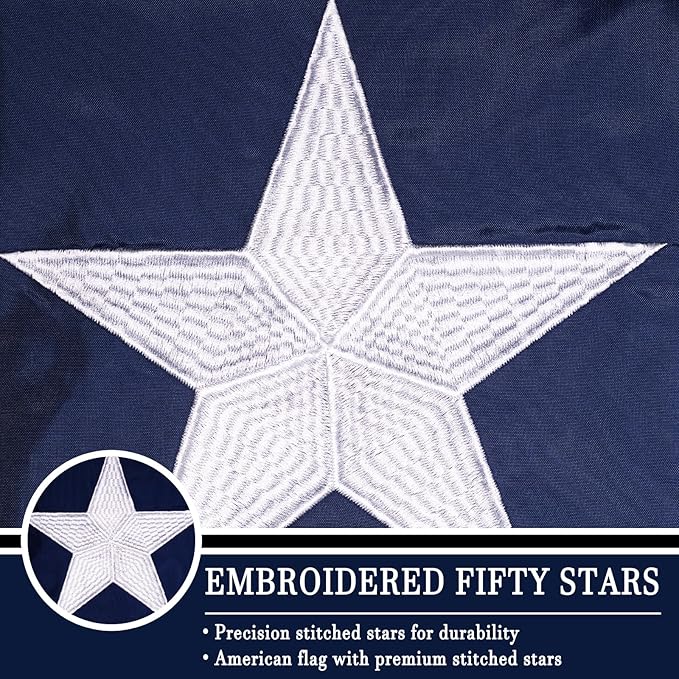 - GREAT WORKMANSHIP: The embroidery stars and sewing are made with precision craftsmanship. The superb double stitching makes the flag more durable and waterproof. This flag can withstand high winds, due to the quadruple stitched hem
