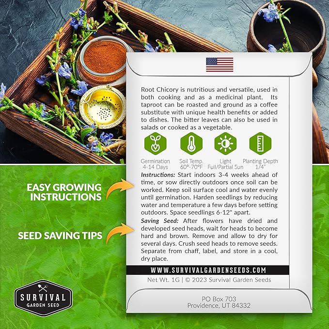 Root Chicory Seed for Planting - 1 Packet with Instructions to Plant and Grow Coffee Chicory in Your Home Vegetable Garden - Non-GMO Heirloom Variety - Survival Garden Seeds
