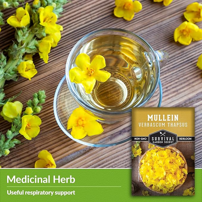 Mullein Seed for Planting - 1 Packet with Instructions to Plant and Grow Medicinal Herb Common Mullein in Your Home Vegetable Garden - Non-GMO Heirloom Variety - Survival Garden Seeds