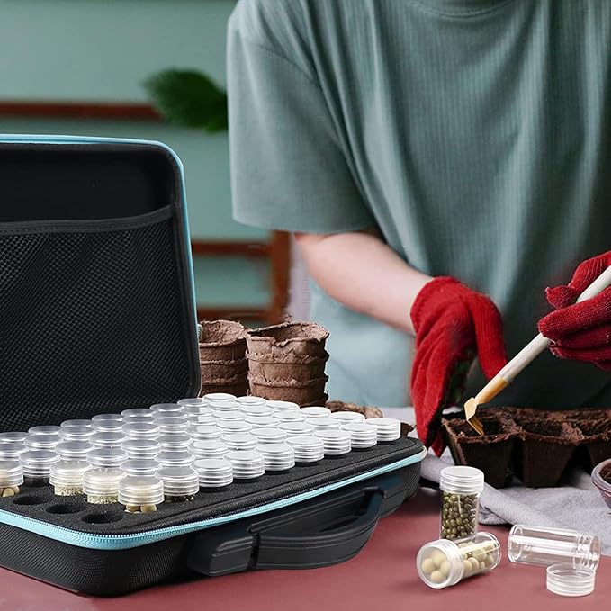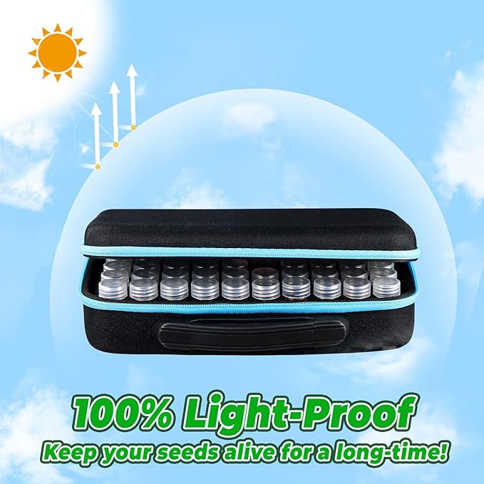 - Multiple Protection: All seed organizer boxes are seated securely in sponge holes to avoid collisions between boxes. the high-quality zipper bag can provide more cushioning and is not easily damaged. Light-proof protection gives them to maintain vitality for longer. It's an ideal choice for garden plant vegetable flower seeds clover basic tomato seeds, and perfect gifts for plant lovers.