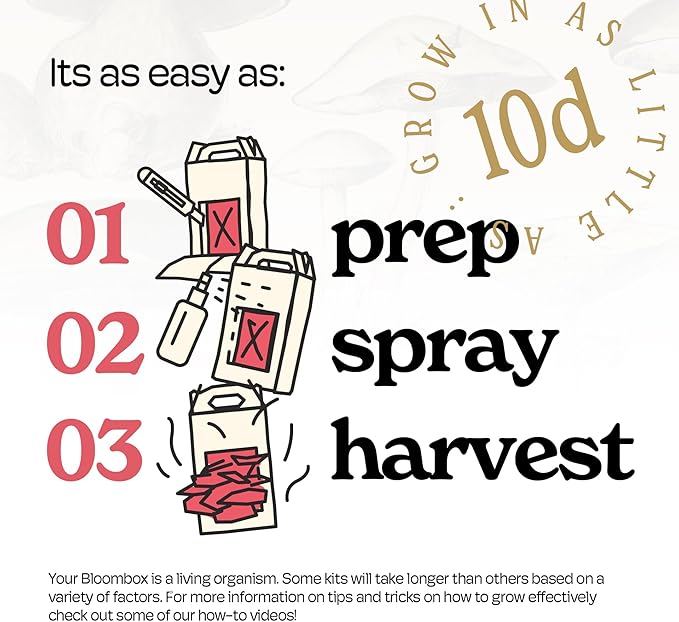 - Comes with Everything You Need: Bloombox Mushroom Farm comes with your all in one grow bag with colonized mushroom substrate from premium spores, mister bottle, humidity tent, and grow guide.