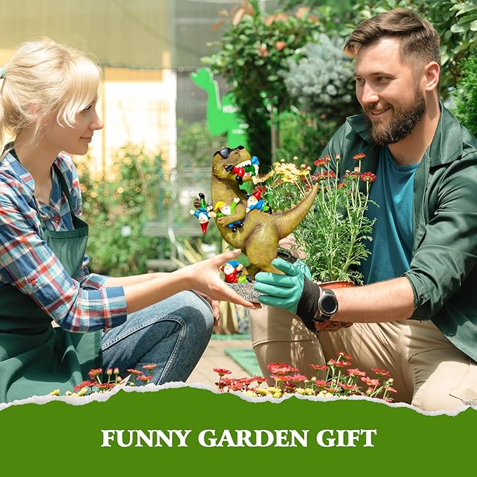 - FANTASTIC GARDEN GIFT - The Dinosaur garden gnomes statue comes in a perfectly protected box. It's the perfect choice for giving to your mom/dad/grandma/grandpa/wife/daughter/girlfriend/boyfriend/aunt, child's birthday, mother's birthday or Mother's Day, Father's Day and Christmas.housewarming gifts for new house