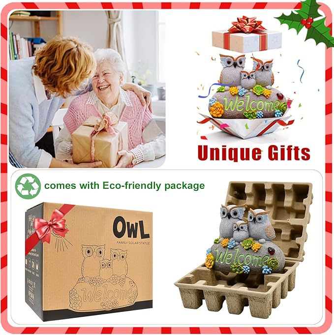 Nacome Solar Owl Statues for Garden Decor: Welcome Sign Outside Lawn for Patio/Balcony/Yard Art/Lawn Ornament House Warming Gifts for Mom/Women