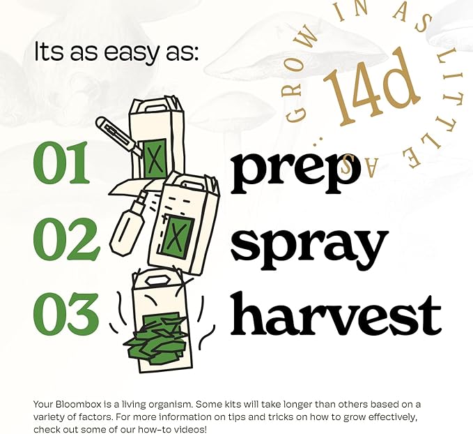- Comes with Everything You Need: Bloombox Mushroom Farm comes with your all in one grow bag with colonized mushroom substrate from premium spores, mister bottle, humidity tent, and grow guide.