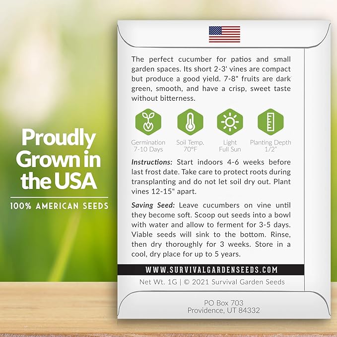 - The Perfect Size - Cucumbers are 7-8" long, with dark green, smooth skin. They are crisp and refreshing without becoming bitter. Ideal slicer or for making pickles - a must-have in every fruit and vegetable seeds collection for those looking for delicious but space-saving produce.
